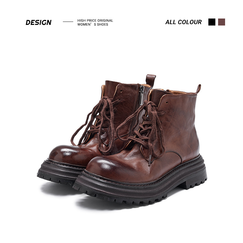 上質本革素材で仕上げた高級感漂う流行り厚底ショートブーツ