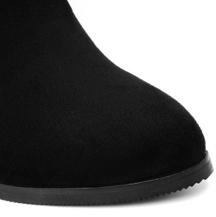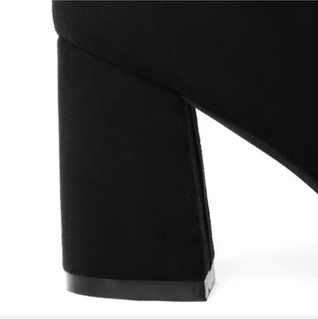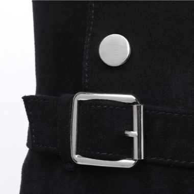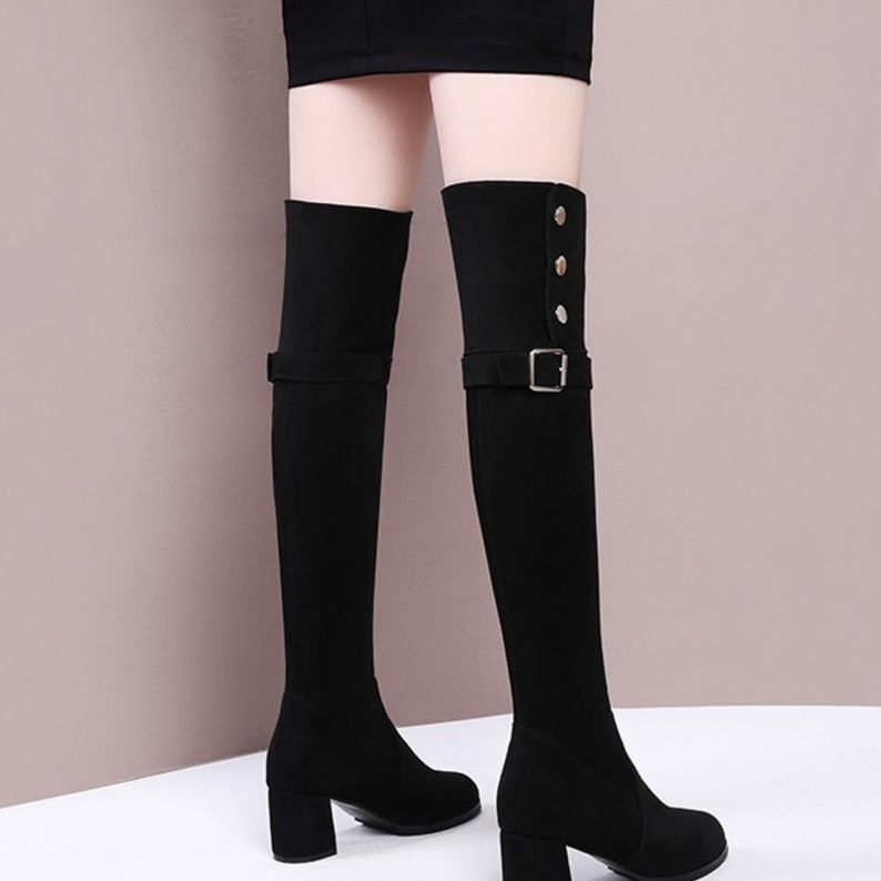 膝上まで美しく包み込むロングシルエットが魅力のニーハイブーツです。 太めの安定感あるブロックヒールで長時間の着用も快適に過ごせます。 サイドのベルトと金属製のハトメが程よいアクセントとなり、シンプルながらも個性を演出します。 スエード調の上質な素材感が大人の女性らしさを引き立てる一足です。 スカートやワンピースと合わせた秋冬コーディネートに最適なブーツとなっております。