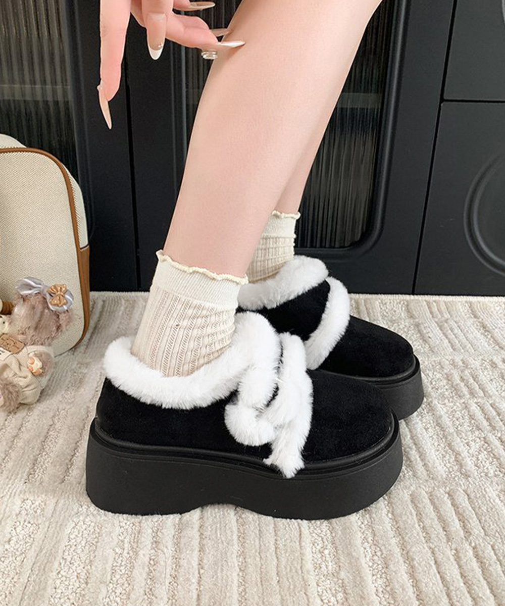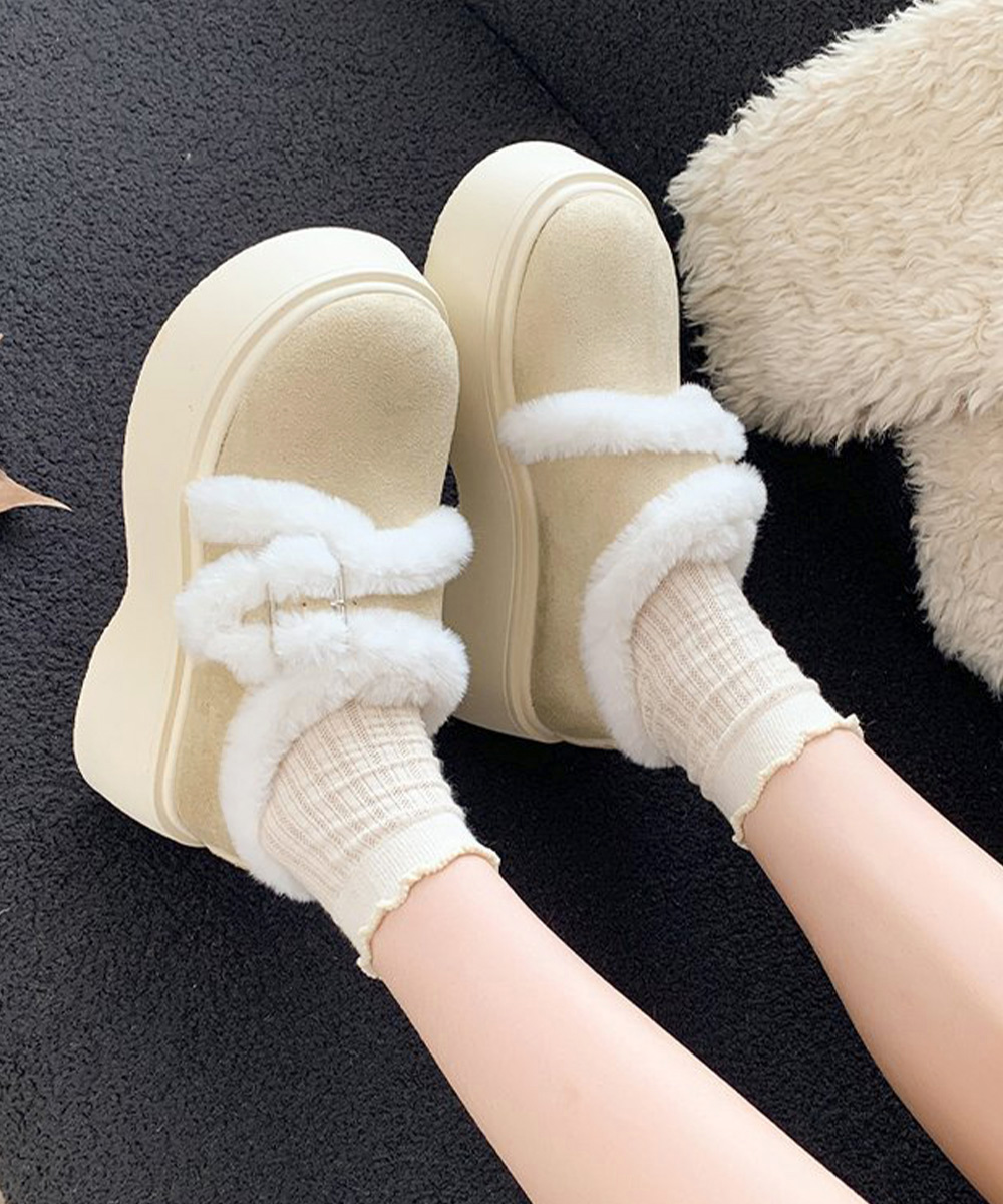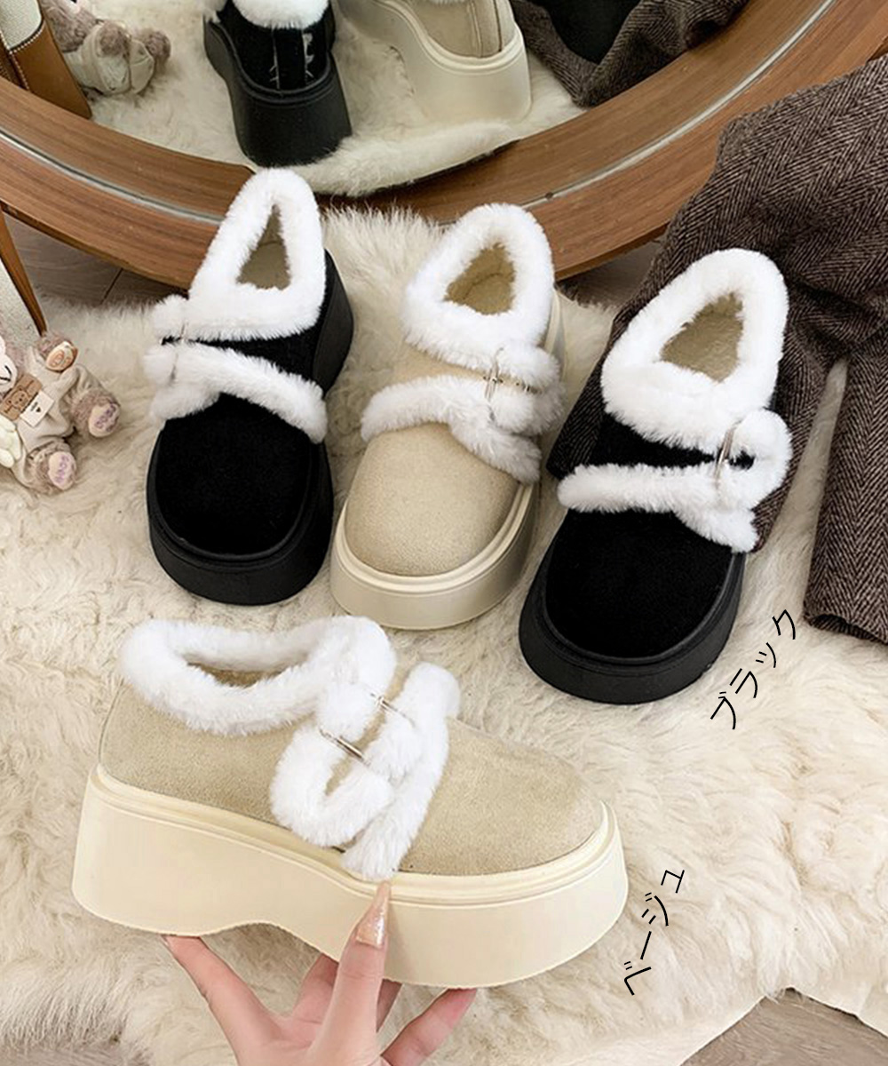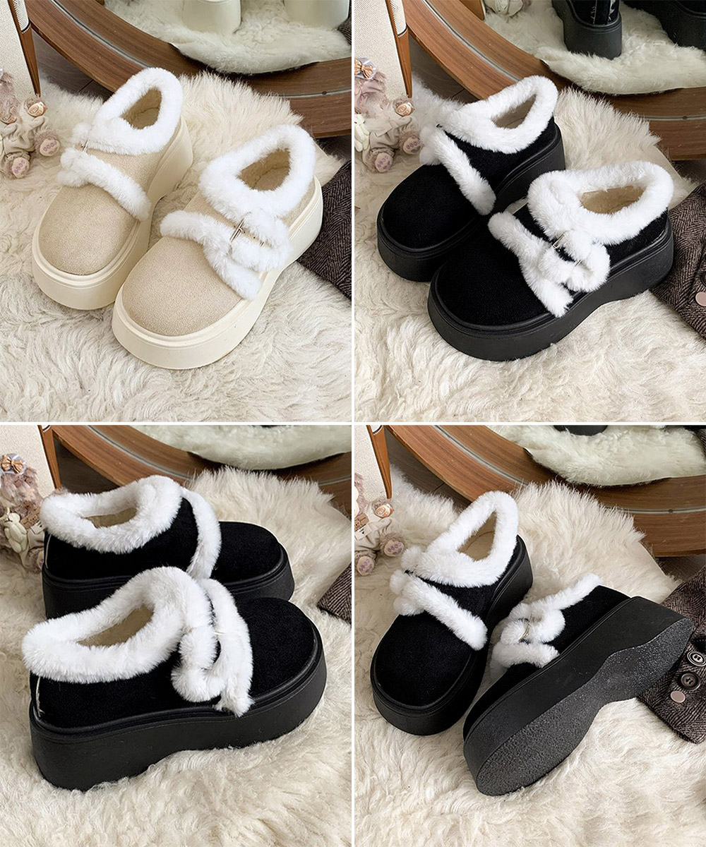 冬の足元を暖かく包む、もこもこファーが可愛い厚底ムートンブーツです。