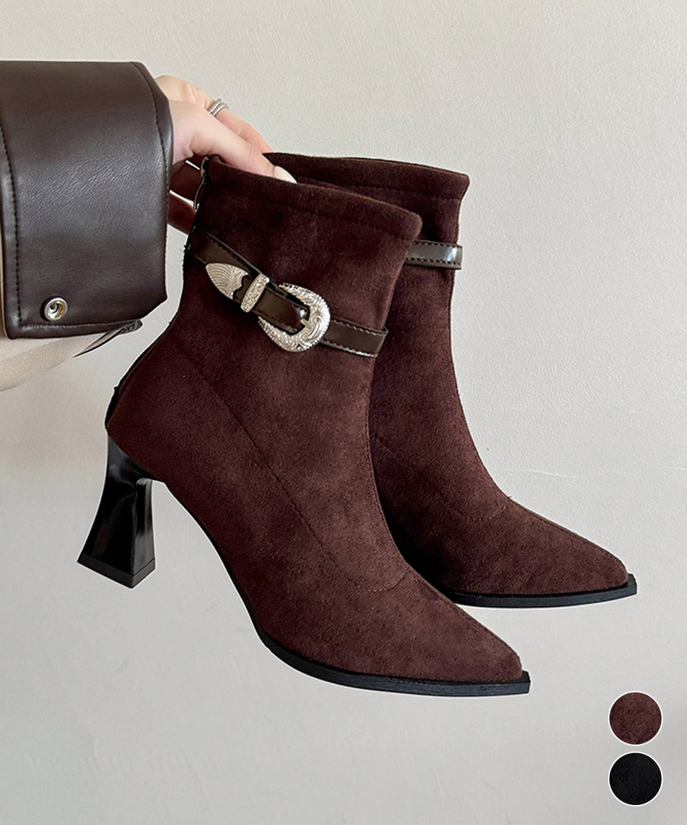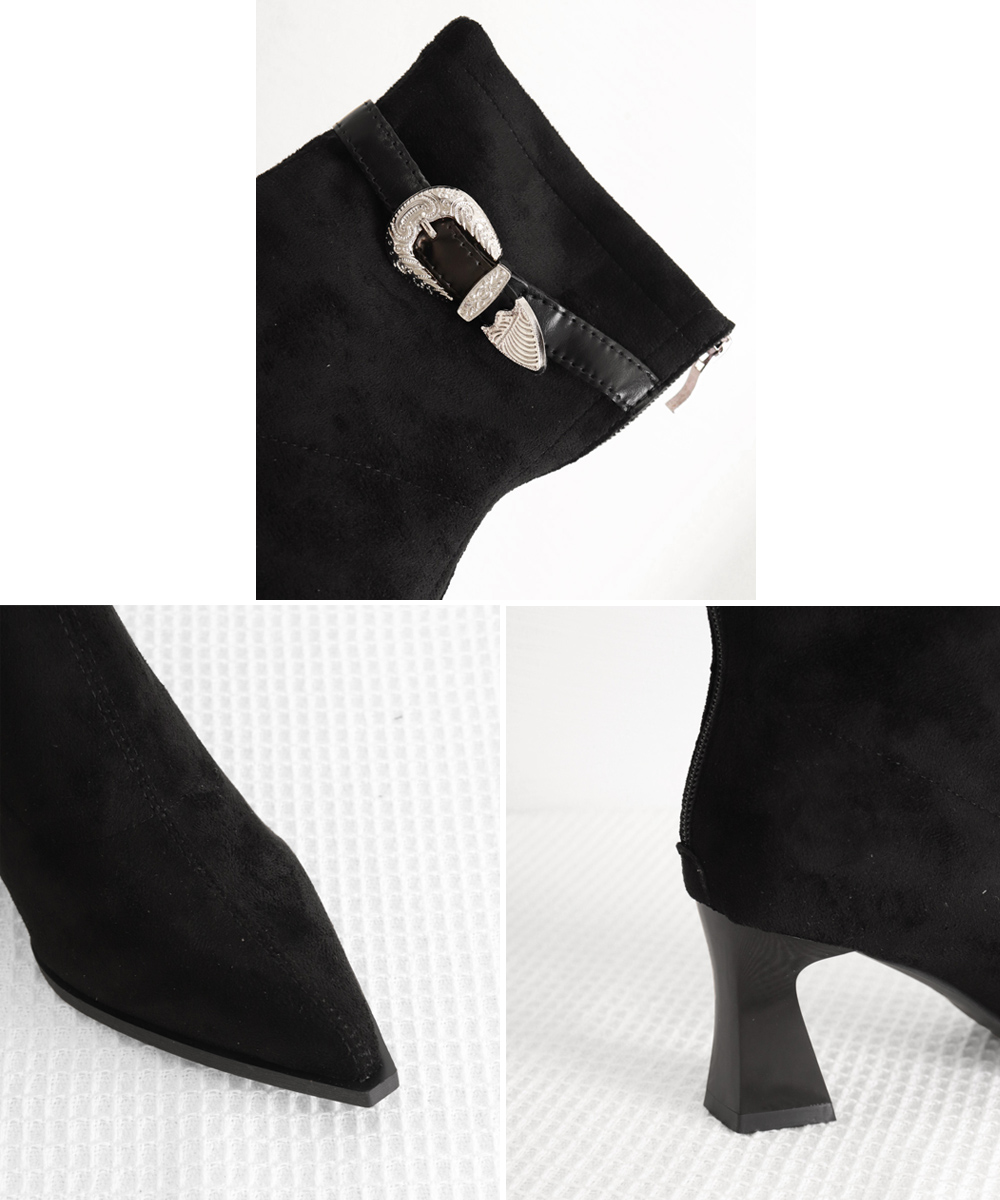 高級感のあるスエード風素材で、通勤からカジュアルまで幅広く活躍するブーツです。