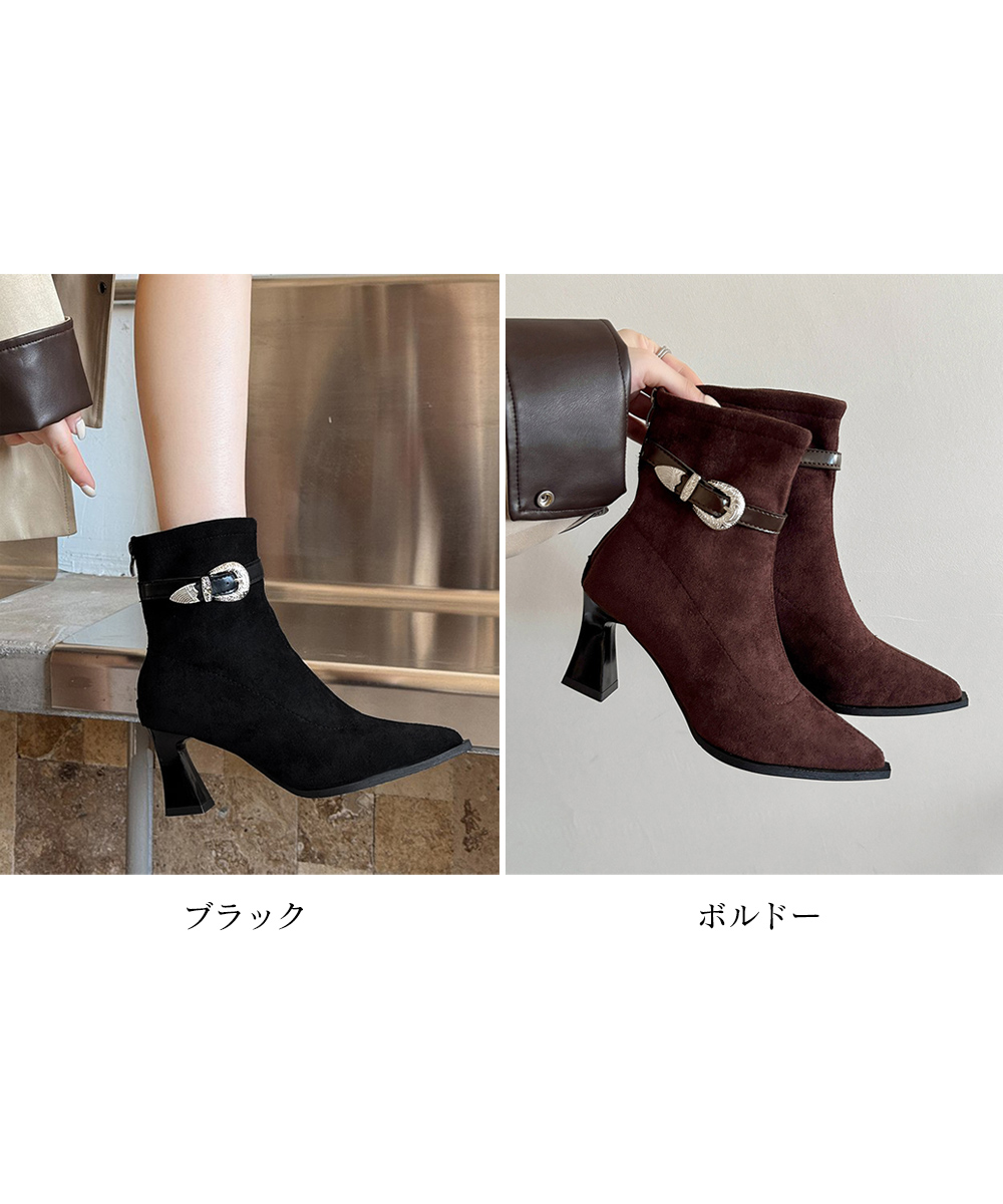 レディース ブーティー 裏微起毛 チャンキーヒール 秋冬 太ヒール フェミニン オフィスカジュアル 歩きやすい おしゃれ 大人きれいめブーツ 暖かい ブーツ通勤 痛くない人気ブーツ 筒周りに細めベルトとシルバーパーツを加え、華やかさと女性らしさをプラス。 バックにはファスナーが付いているので、脱ぎ履きもらくらく。 程よい太さのヒールでスタイルアップが期待でき、ヒールが高くても安定感がある。 フェイクスエード素材で質感がよく高級感があり、どんなコーデにも合わせやすい一足。 甲素材:合成繊維+合成皮革 底素材:合成底 カラー:ブラック/ボルドー サイズ:22.5cm/23.0cm/23.5cm/24.0cm/24.5cm/25.0cm [22.5]長さ:約22.5cm 幅:約7.6cm 筒丈:約14.0cm [23.0]長さ:約23.0cm 幅:約7.7cm 筒丈:約14.0cm [23.5]長さ:約23.5cm 幅:約7.8cm 筒丈:約14.0cm [24.0]長さ:約24.0cm 幅:約7.9cm 筒丈:約14.0cm [24.5]長さ:約24.5cm 幅:約8.0cm 筒丈:約14.5cm [25.0]長さ:約25.0cm 幅:約8.1cm 筒丈:約14.5cm ヒール(全サイズ):約7cm プラットフォーム(全サイズ):約0.5cm 重さ(両足):約445g-493g 生産国:中国 ※すべて平置きサイズです(採寸方法違いより、多少の誤差がございますので、ご了承ください)。 ※海外輸入品のため、商品の細部仕様は多少異なる場合がございます。予めご了承の上、ご注文お願い致します。