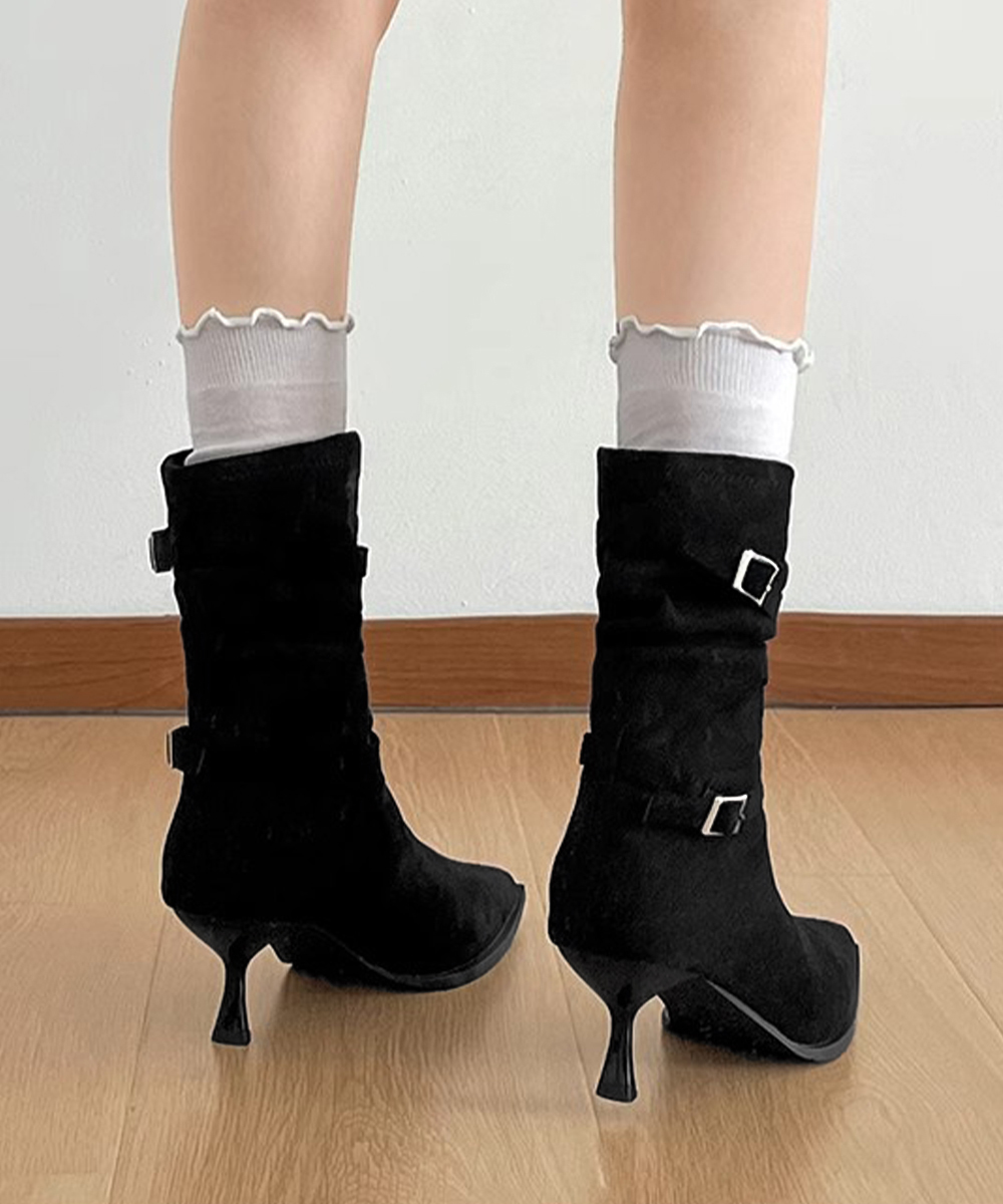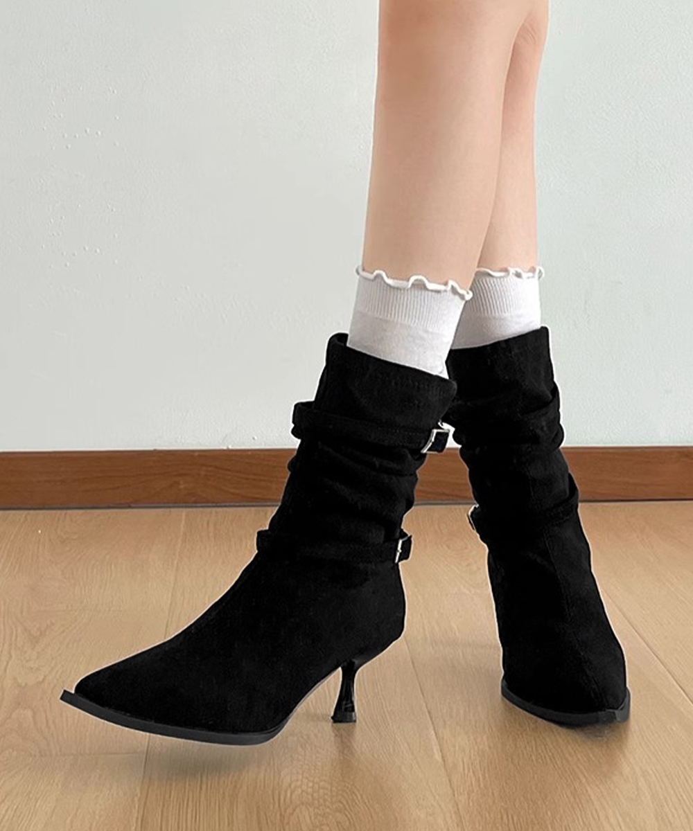 しなやかなスエード素材を使用したミドル丈ブーツは、美脚効果抜群の一足です。