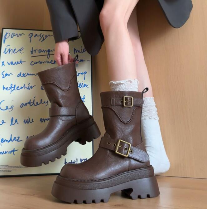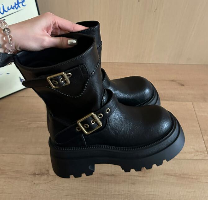 安定感のある厚底ソールで歩きやすく、デイリーユースにぴったりなブーツです。