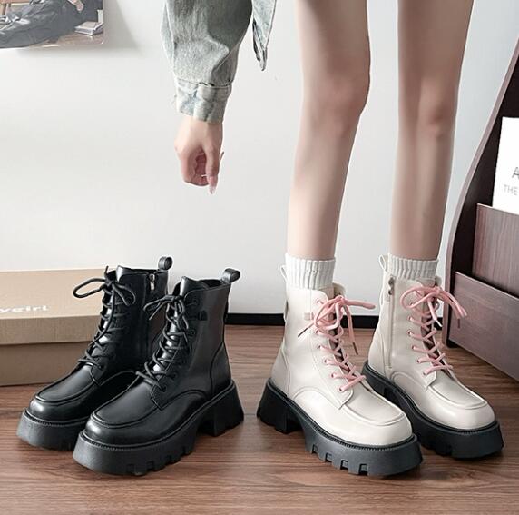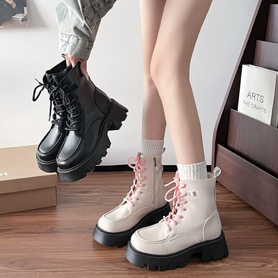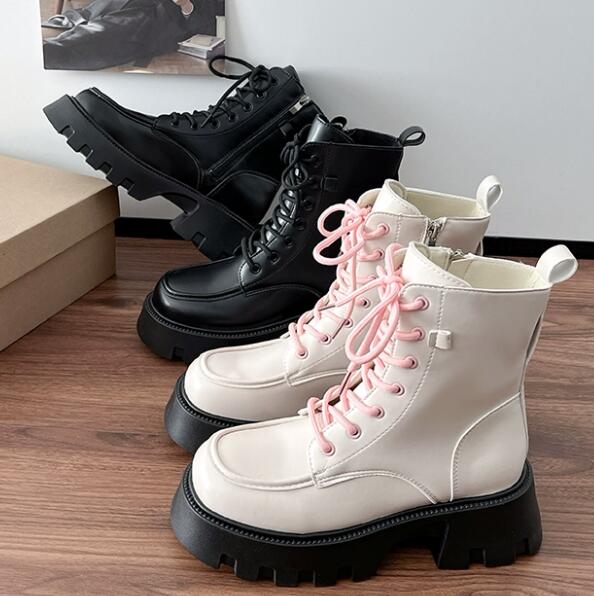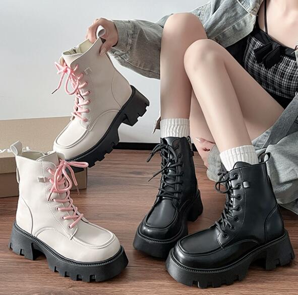 マーティン風のデザインで編み上げレースが可愛らしいアクセント。