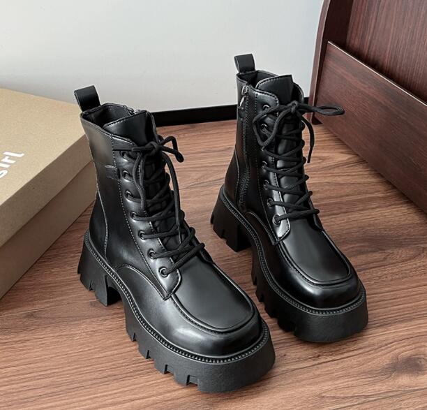 秋冬シーズンにぴったりの厚底ショートブーツです。