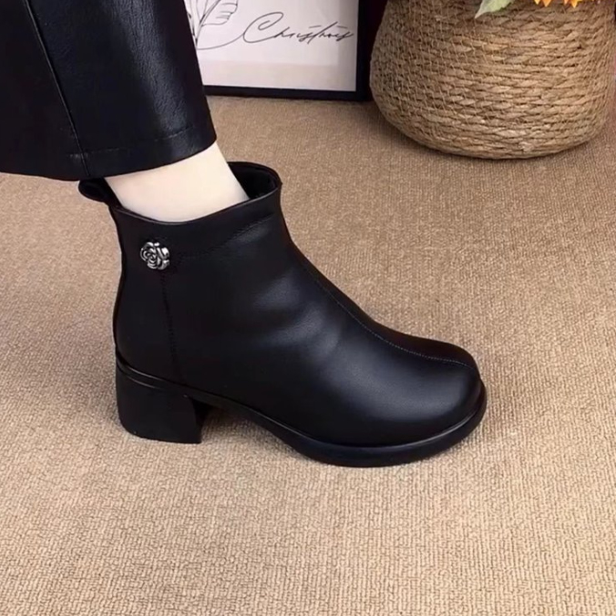 寒い季節にぴったりの裏起毛付きショートブーツが登場。 足元を優しく包み込む暖かな裏起毛で、冬の外出も快適に過ごせます。 上品なミドルヒールデザインで美脚効果も抜群。 防寒性とファッション性を兼ね備えた、この冬必須のブーツです。