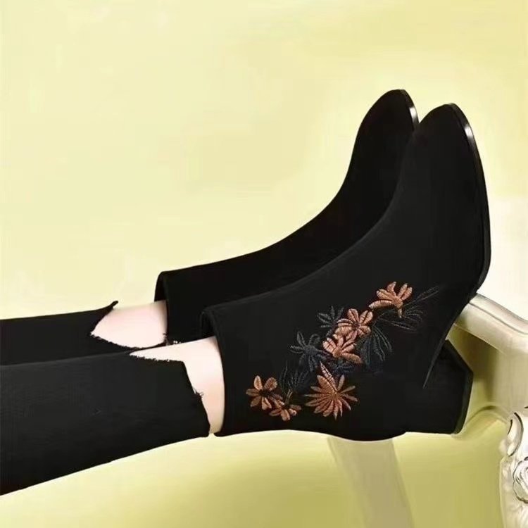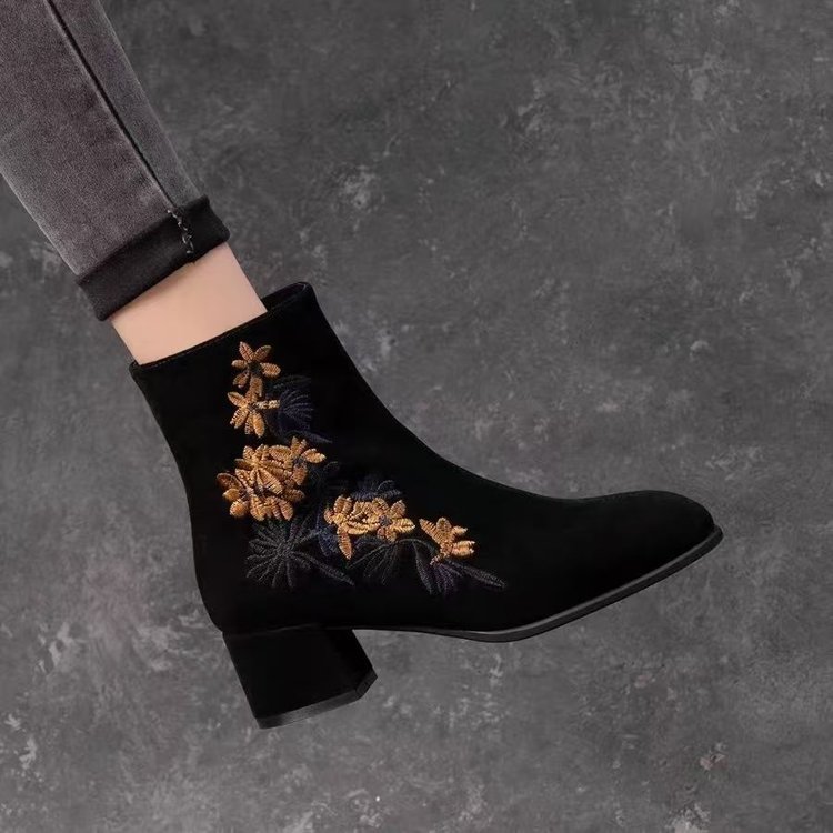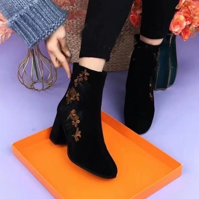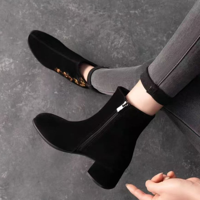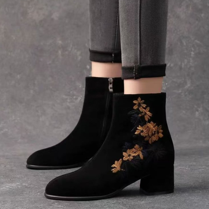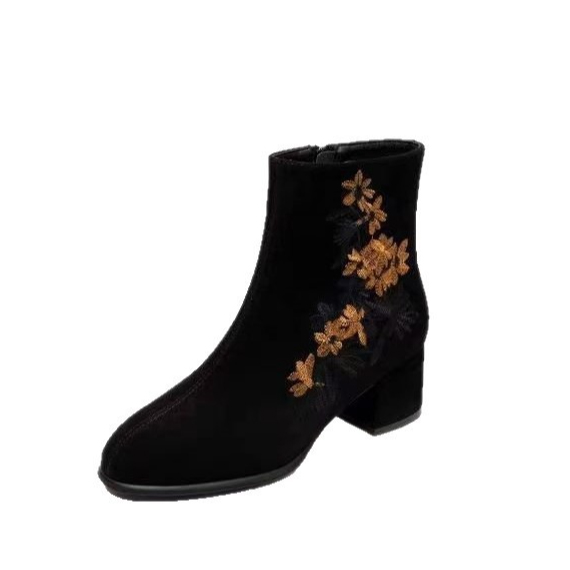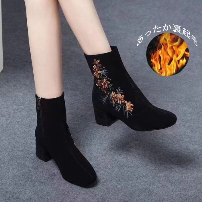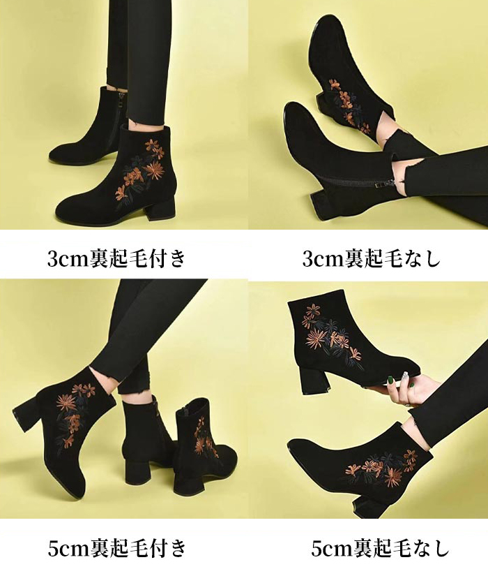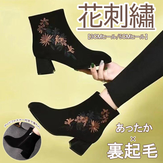 上品な花刺繍が美しいショートブーツが登場。 太ヒールで歩きやすく、裏起毛仕様であったか快適。 3センチと5センチのヒールから選べる冬の定番ブーツ。 おしゃれと機能性を両立した大人女性にぴったりの一足です。