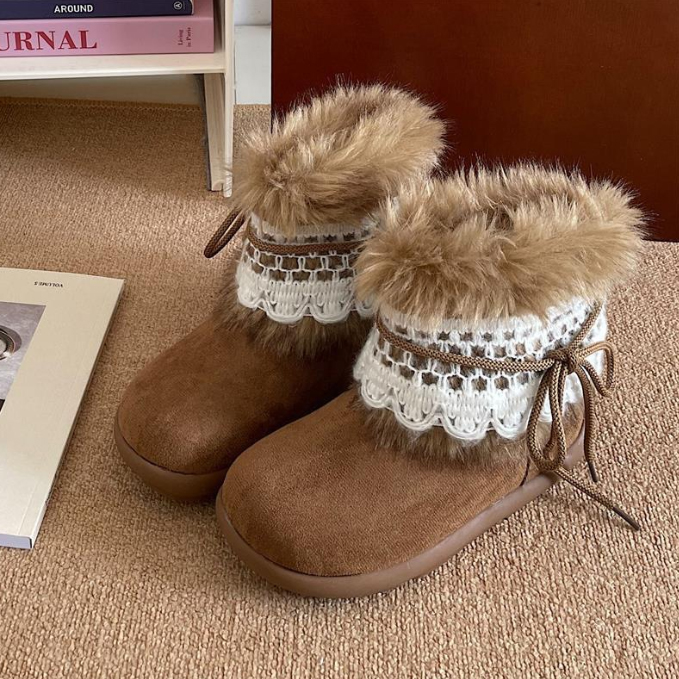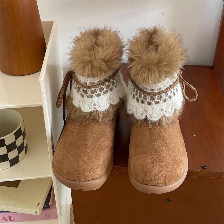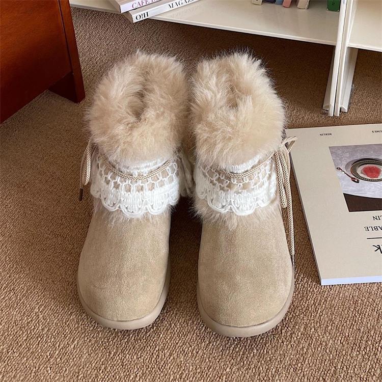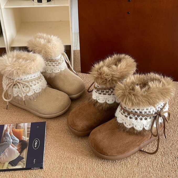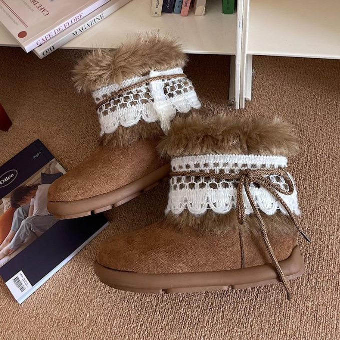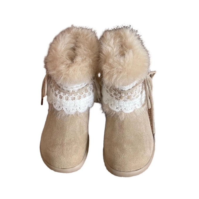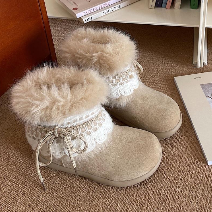 寒い季節に最適な女性用ショートブーツが新登場。 上品なレース装飾とふわふわのムートン調素材で、おしゃれと暖かさを両立。 裏起毛仕様で足元をしっかり防寒し、快適な履き心地を実現。 カジュアルからきれいめまで幅広いコーディネートに合わせやすいブーツです。