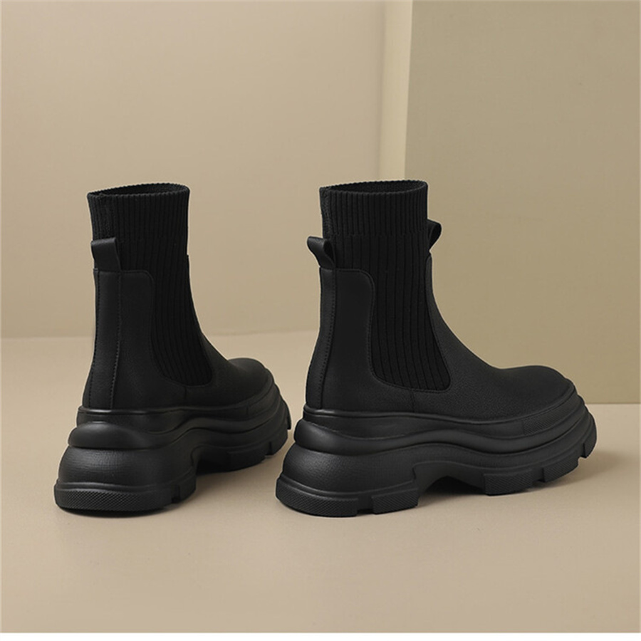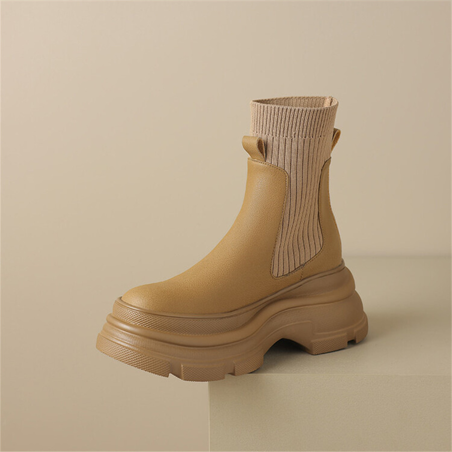 おしゃれなニット素材と、落ち着いた雰囲気の上質な大人の着こなしを演出するショートブーツ。