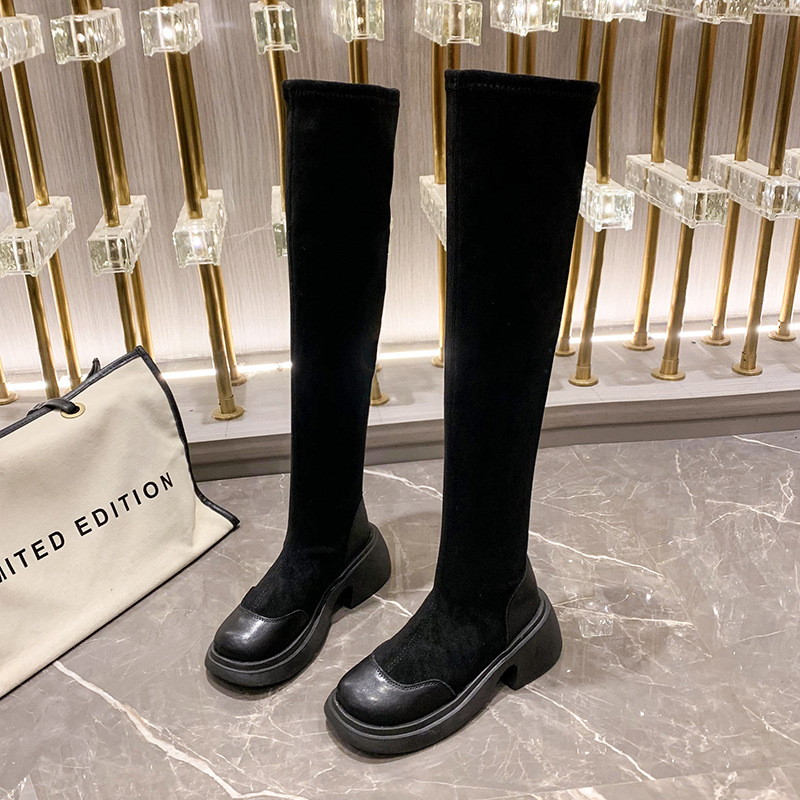 脚長効果抜群のニーハイブーツが登場。厚底デザインでスタイルアップ効果も期待できます。