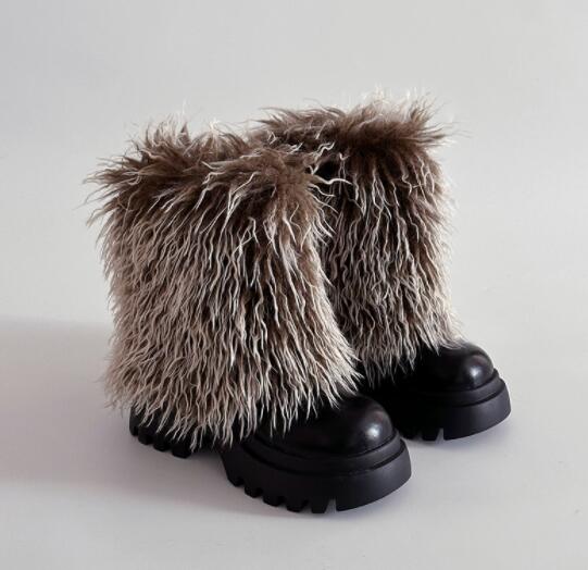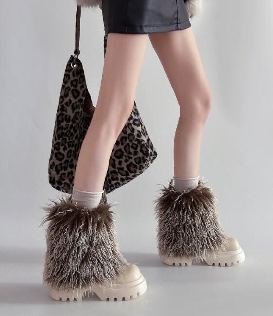 ふわふわのファー素材が特徴的な秋冬向けショートブーツです。