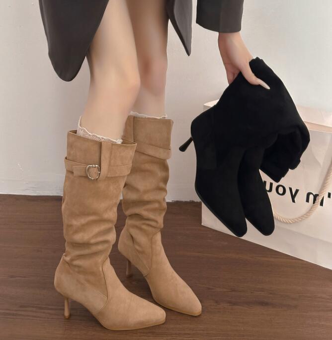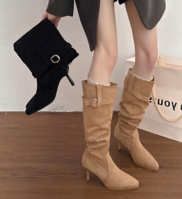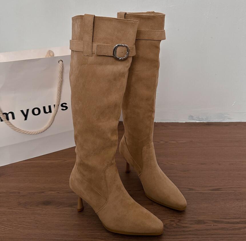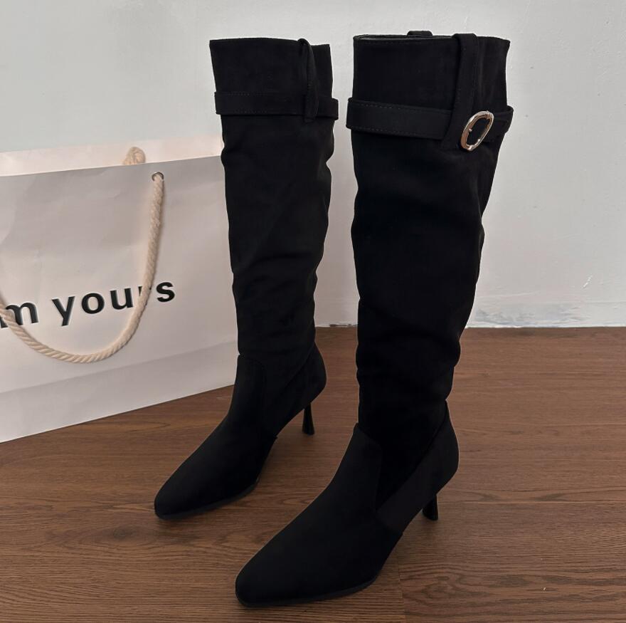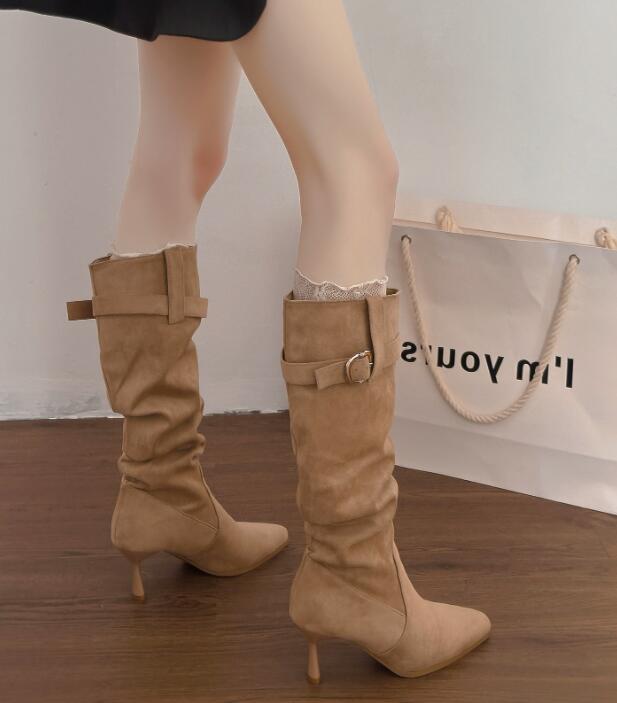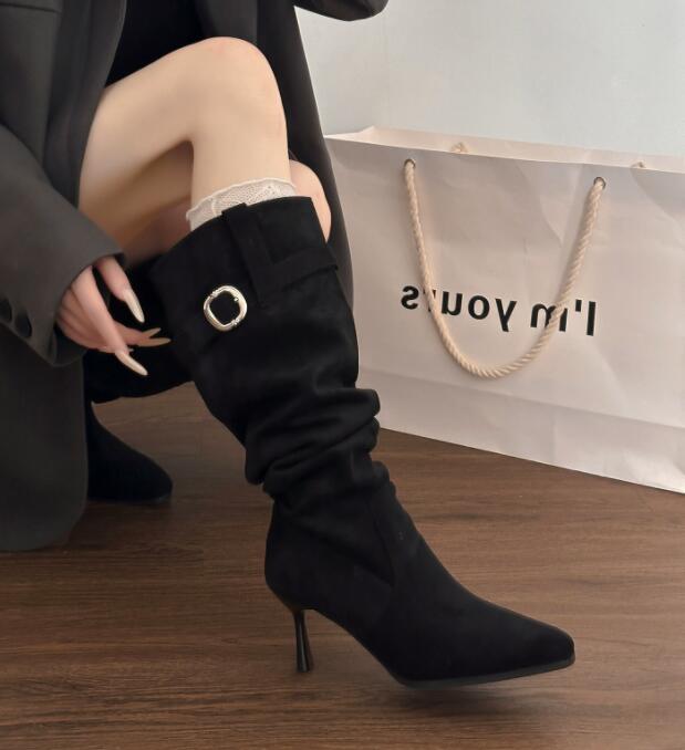 上品な印象を与える膝下丈のロングブーツです。